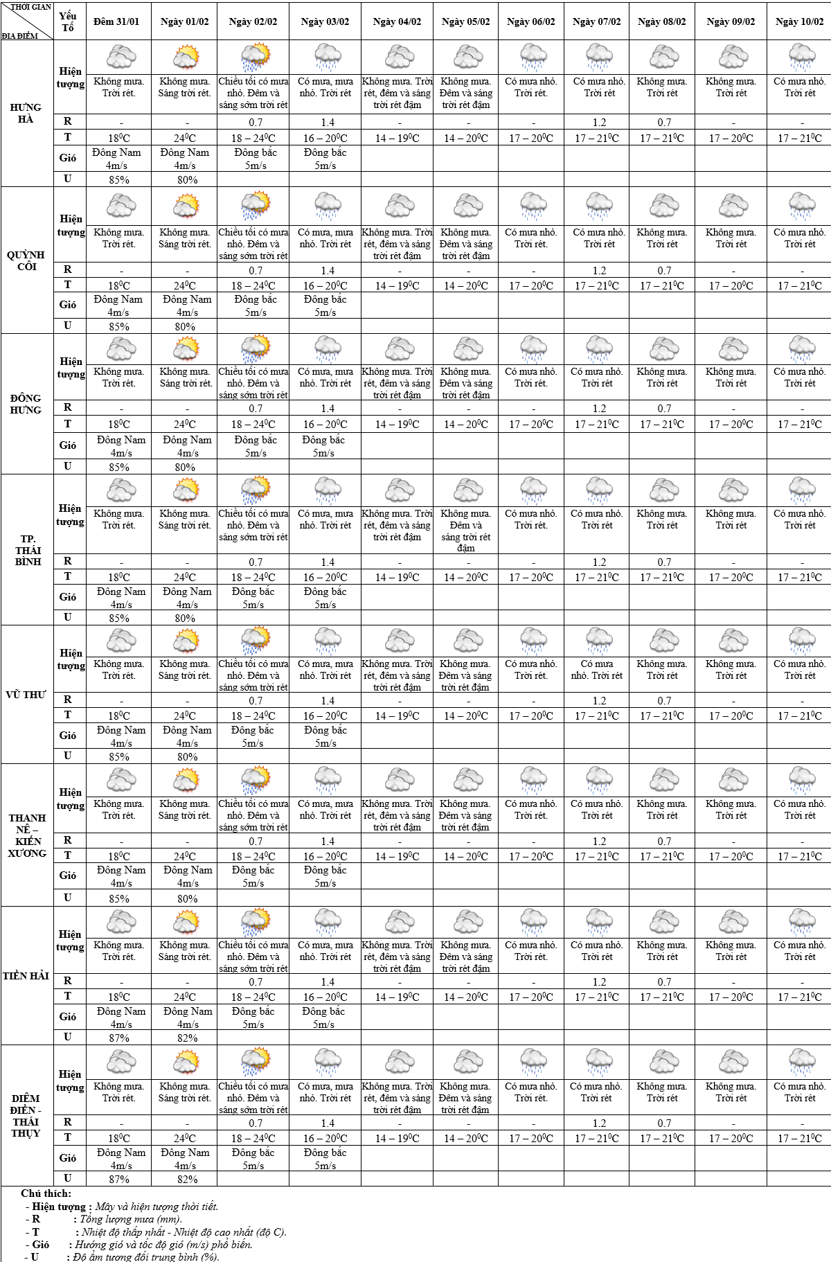 DỰ BÁO THỜI TIẾT ĐIỂM 10 NGÀY KHU VỰC THÁI BÌNH TỪ ĐÊM 31/01 – 10/02/2025