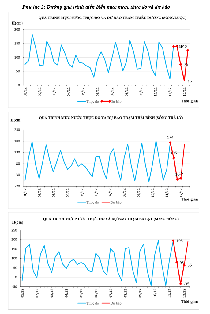 Phụ lục 1: Bảng mực nước thực đo và dự báo các trạm (Đơn vị: cm)