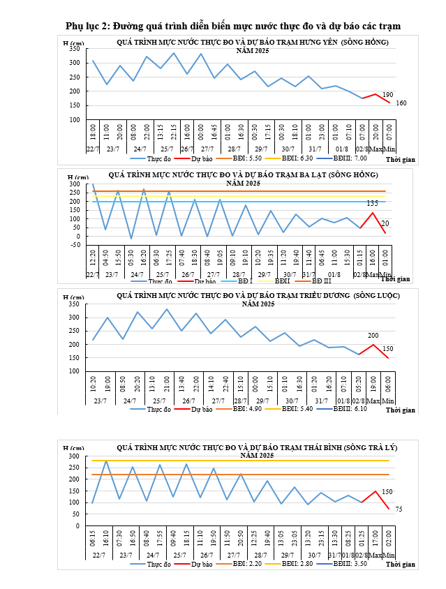 Phụ lục 1: Bảng mực nước thực đo và dự báo các trạm