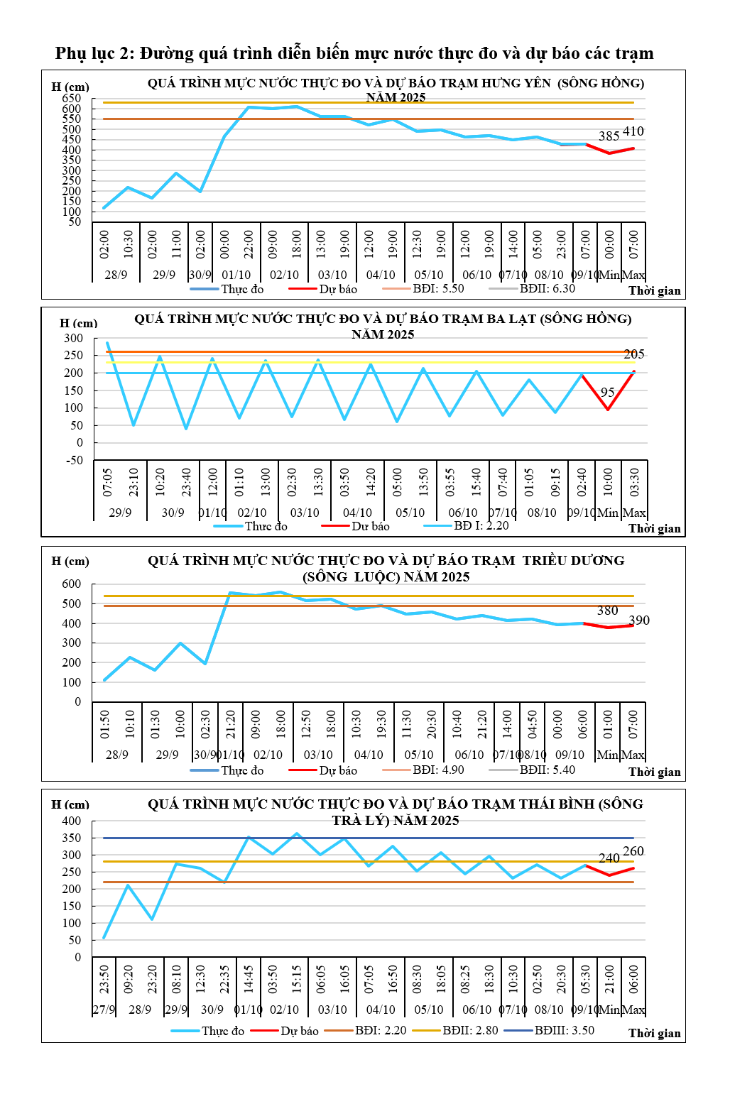 Phụ lục 1: Bảng mực nước thực đo và dự báo các trạm