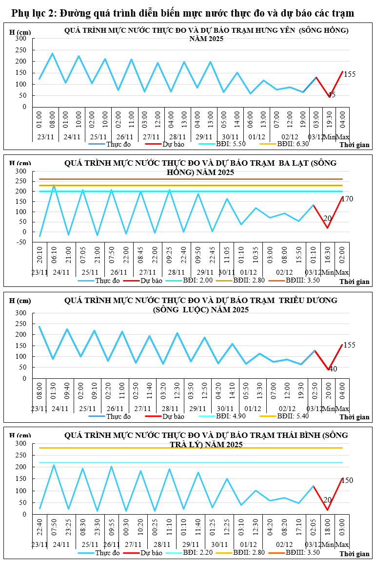 - Khả năng xuất hiện các hiện tượng thủy văn nguy hiểm trong thời hạn dự báo: Ít có khả năng xảy ra các hiện tượng thuỷ văn nguy hiểm.