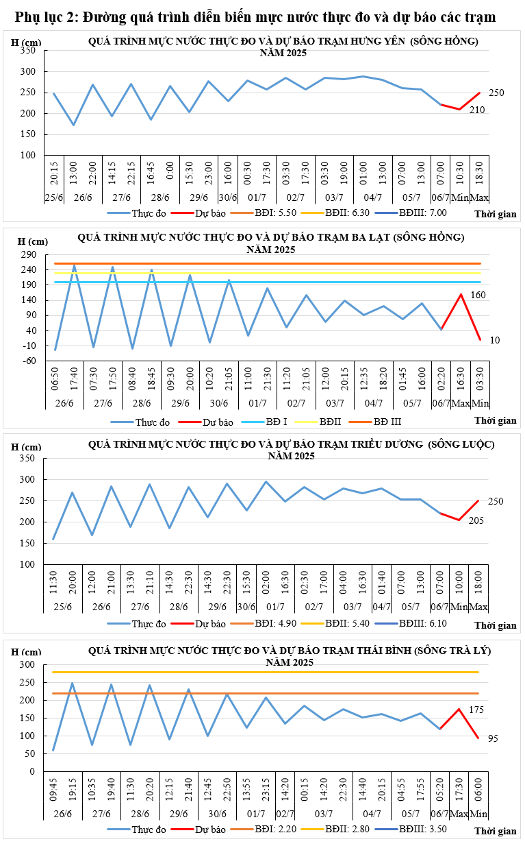 Phụ lục 1: Bảng mực nước thực đo và dự báo các trạm