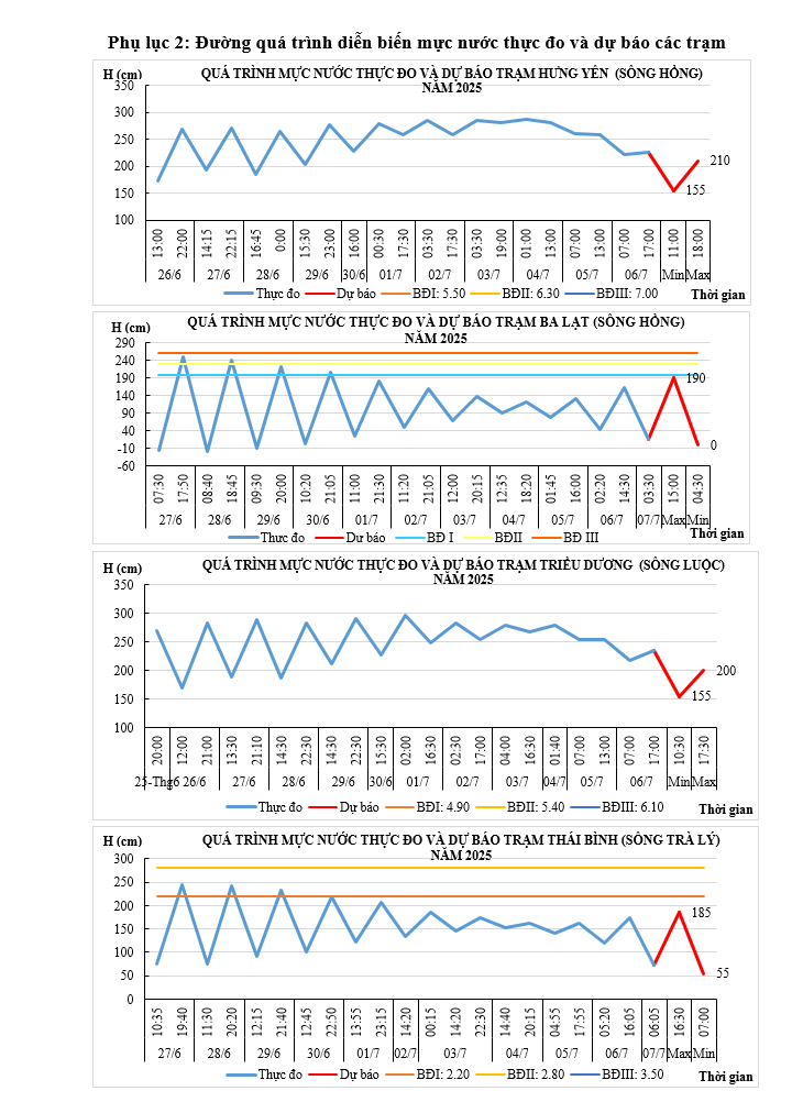 Phụ lục 1: Bảng mực nước thực đo và dự báo các trạm