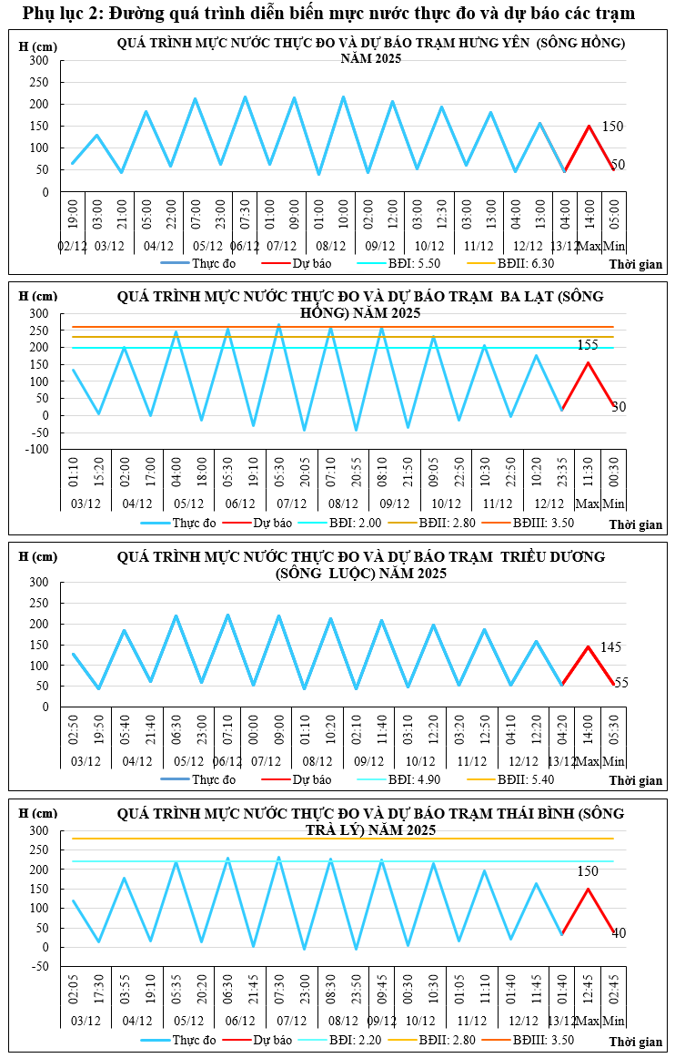 Mực nước trên các sông Hồng, sông Luộc và sông Trà Lý chịu ảnh hưởng của thủy triều và điều tiết của các hồ thủy điện: Xu thế xuống.
