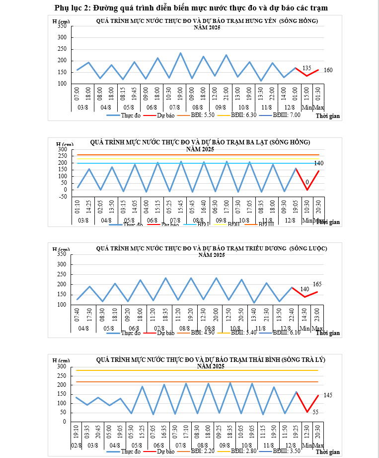 Phụ lục 1: Bảng mực nước thực đo và dự báo các trạm