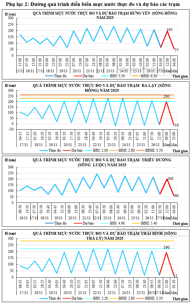 Phụ lục 1: Bảng mực nước thực đo và dự báo các trạm
