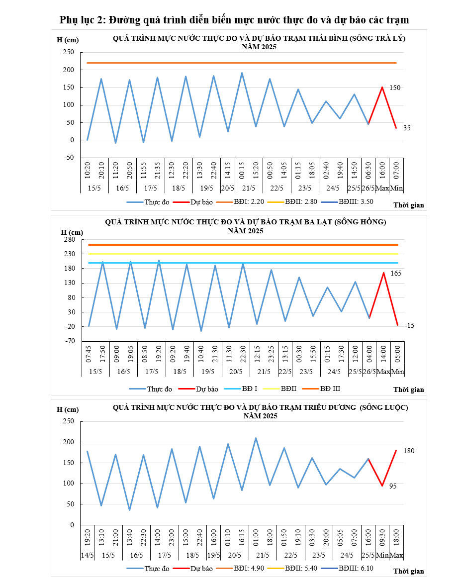 - Mực nước trên các sông Trà Lý, sông Hồng, sông Luộc chịu ảnh hưởng của thủy triều, điều tiết hồ thủy điện: xu thế lên.