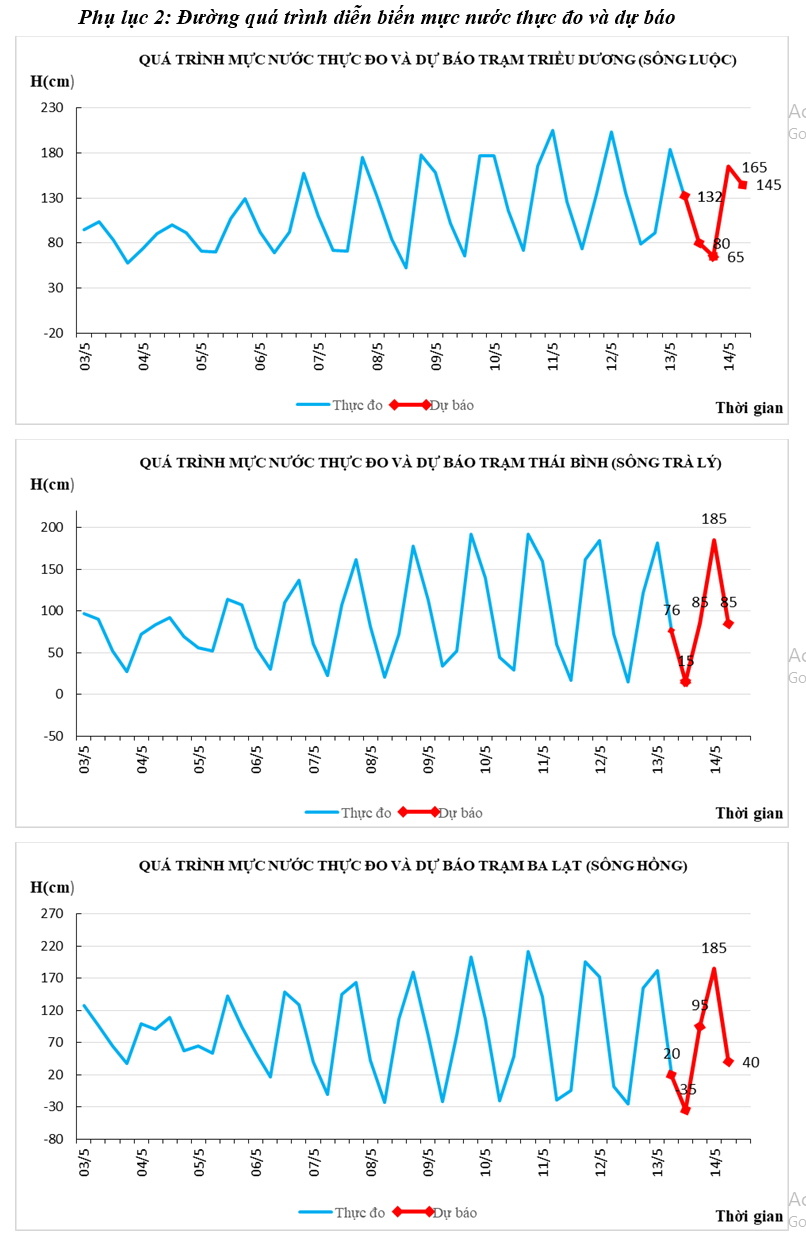 Mực nước trên các sông Trà Lý, sông Hồng, sông Luộc chịu ảnh hưởng của thủy triều, điều tiết hồ thủy điện: xu thế xuống.