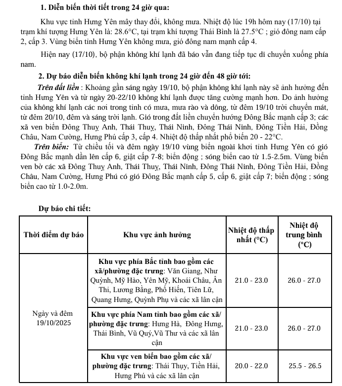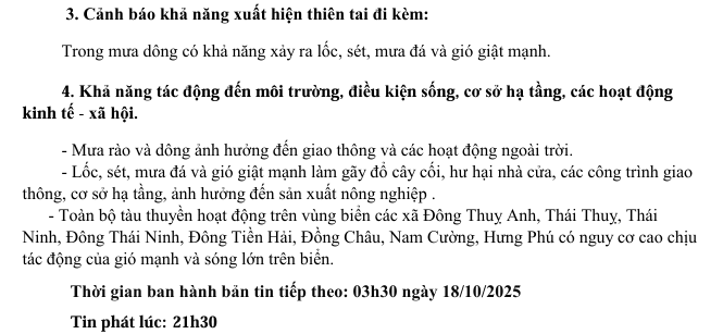 TIN GIÓ MÙA ĐÔNG BẮC (21H30 NGÀY 17/10/2025)