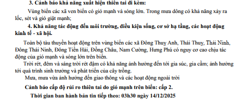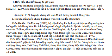 TIN GIÓ MÙA ĐÔNG BẮC VÀ RÉT KHU VỰC TỈNH HƯNG YÊN (21h30 NGÀY 13/12/2025)