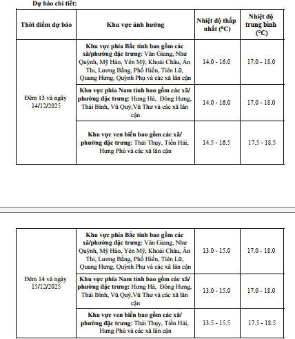 • DỰ BÁO THỜI TIẾT KHU VỰC HƯNG YÊN ĐÊM 15 NGÀY 16/12/2025