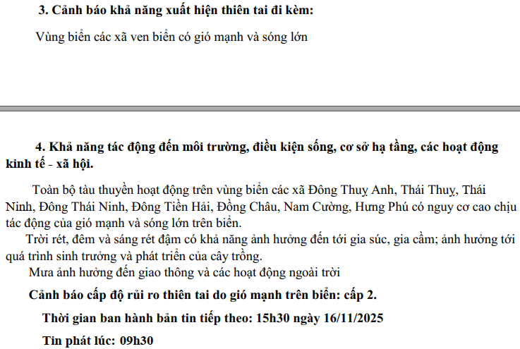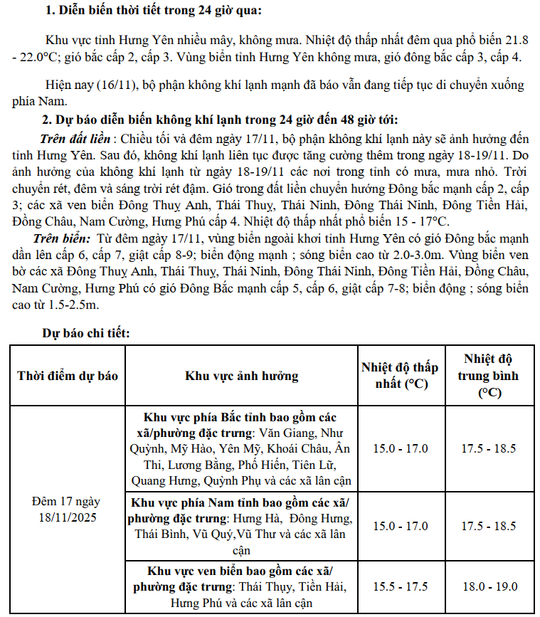 TIN KHÔNG KHÍ LẠNH TĂNG CƯỜNG KHU VỰC TỈNH HƯNG YÊN (09h30 NGÀY 16/11/2025)