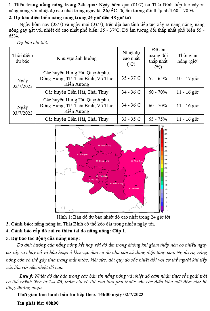 TIN DỰ BÁO NẮNG NÓNG KHU VỰC THÁI BÌNH (08h NGÀY 02/7/2023)