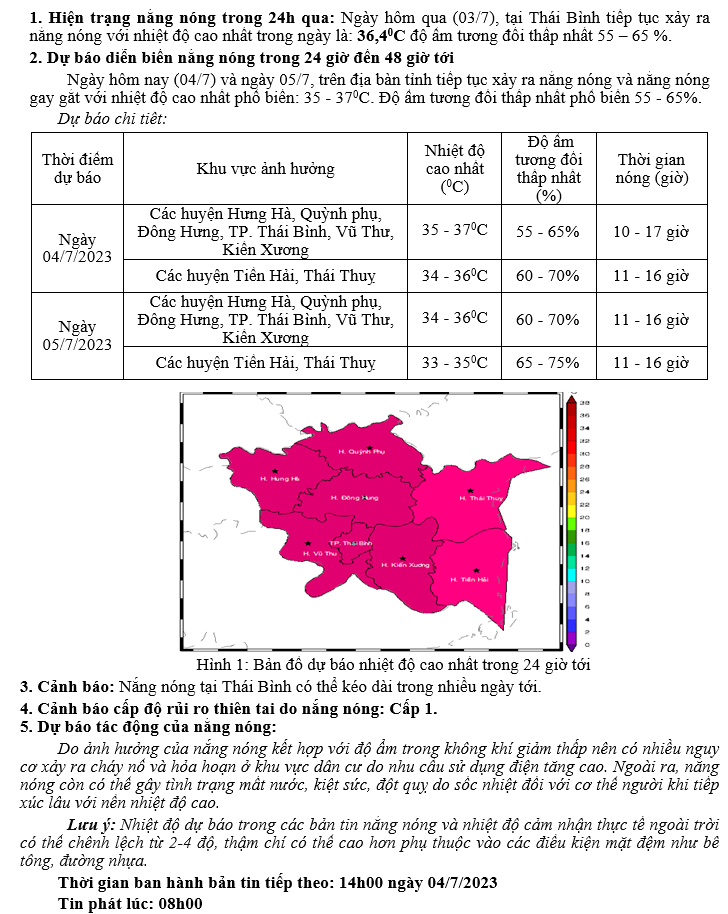 TIN DỰ BÁO NẮNG NÓNG KHU VỰC THÁI BÌNH (08h NGÀY 04/7/2023)