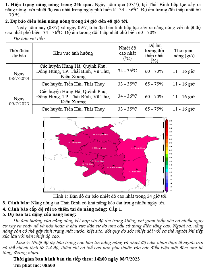 TIN DỰ BÁO NẮNG NÓNG KHU VỰC THÁI BÌNH (08h NGÀY 08/7/2023)