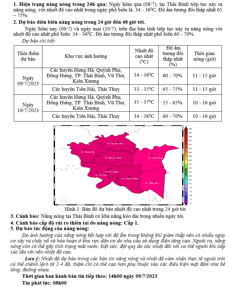 TIN DỰ BÁO NẮNG NÓNG KHU VỰC THÁI BÌNH (08h NGÀY 09/7/2023)