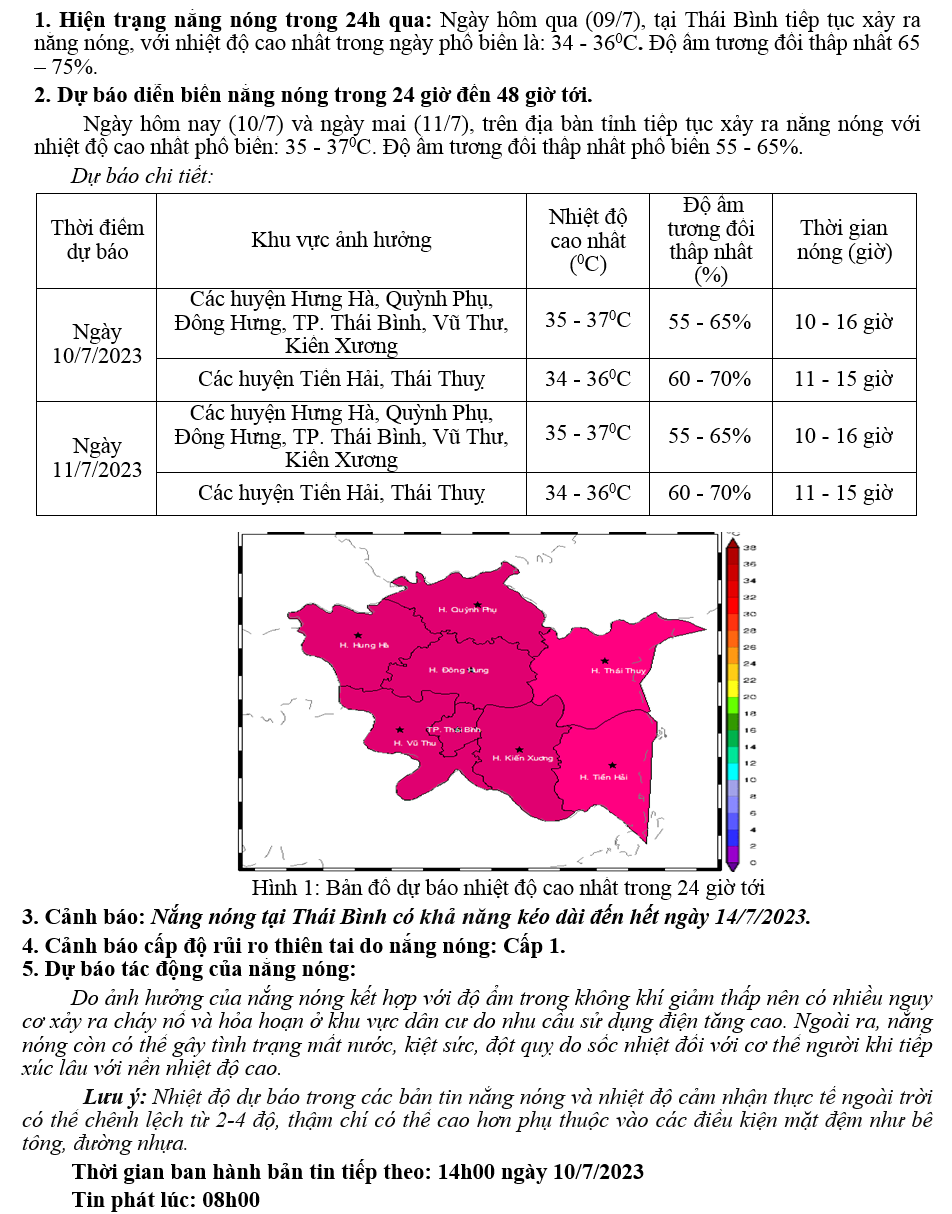 TIN DỰ BÁO NẮNG NÓNG KHU VỰC THÁI BÌNH (08h NGÀY 10/7/2023)