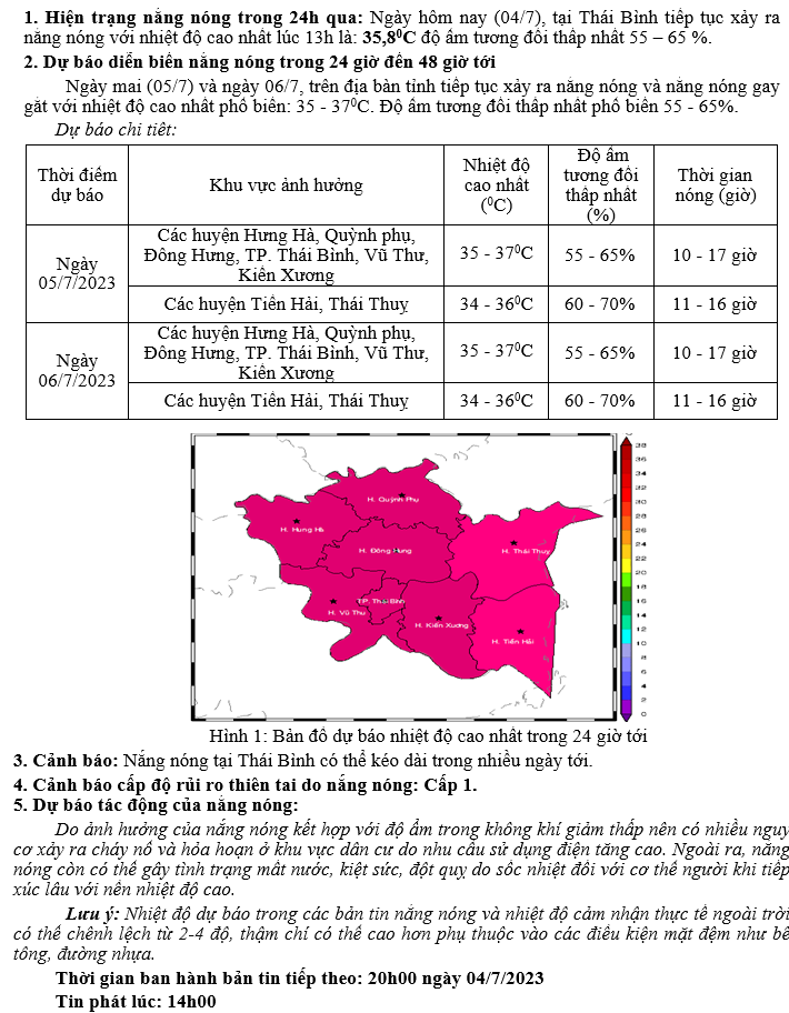 TIN DỰ BÁO NẮNG NÓNG KHU VỰC THÁI BÌNH (14h NGÀY 04/7/2023)