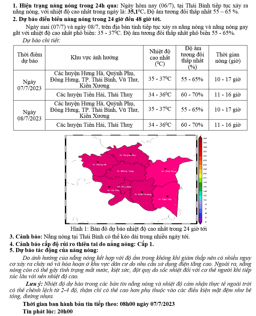 TIN DỰ BÁO NẮNG NÓNG KHU VỰC THÁI BÌNH (20h NGÀY 06/7/2023)