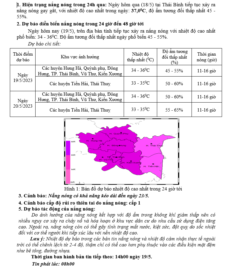 TIN DỰ BÁO NẮNG NÓNG KHU VỰC TỈNH THÁI BÌNH (08h NGÀY 19/5/2023)