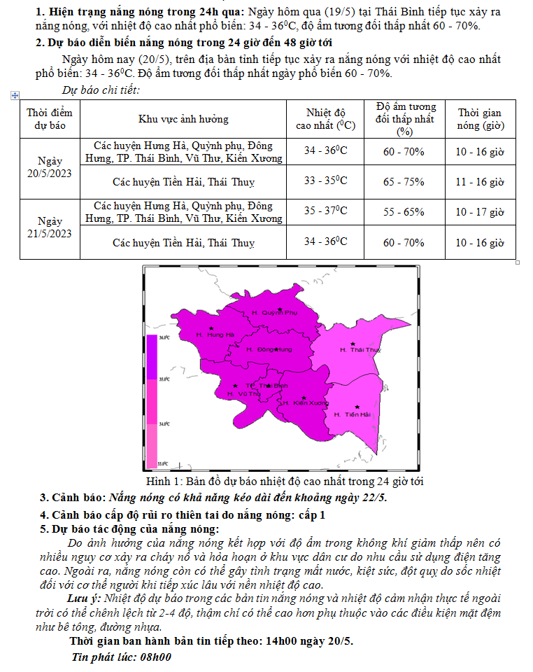TIN DỰ BÁO NẮNG NÓNG KHU VỰC TỈNH THÁI BÌNH (08h NGÀY 20/5/2023)