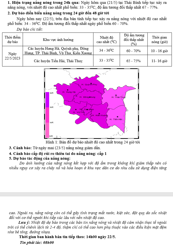 TIN DỰ BÁO NẮNG NÓNG KHU VỰC TỈNH THÁI BÌNH (08h NGÀY 22/5/2023)