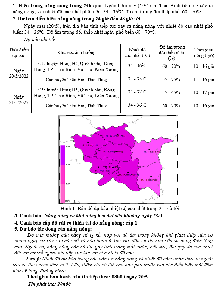 TIN DỰ BÁO NẮNG NÓNG KHU VỰC TỈNH THÁI BÌNH (20h NGÀY 19/5/2023)