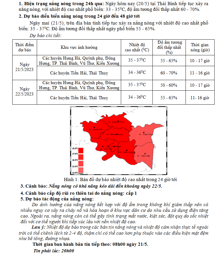 TIN DỰ BÁO NẮNG NÓNG KHU VỰC TỈNH THÁI BÌNH (20h NGÀY 20/5/2023)