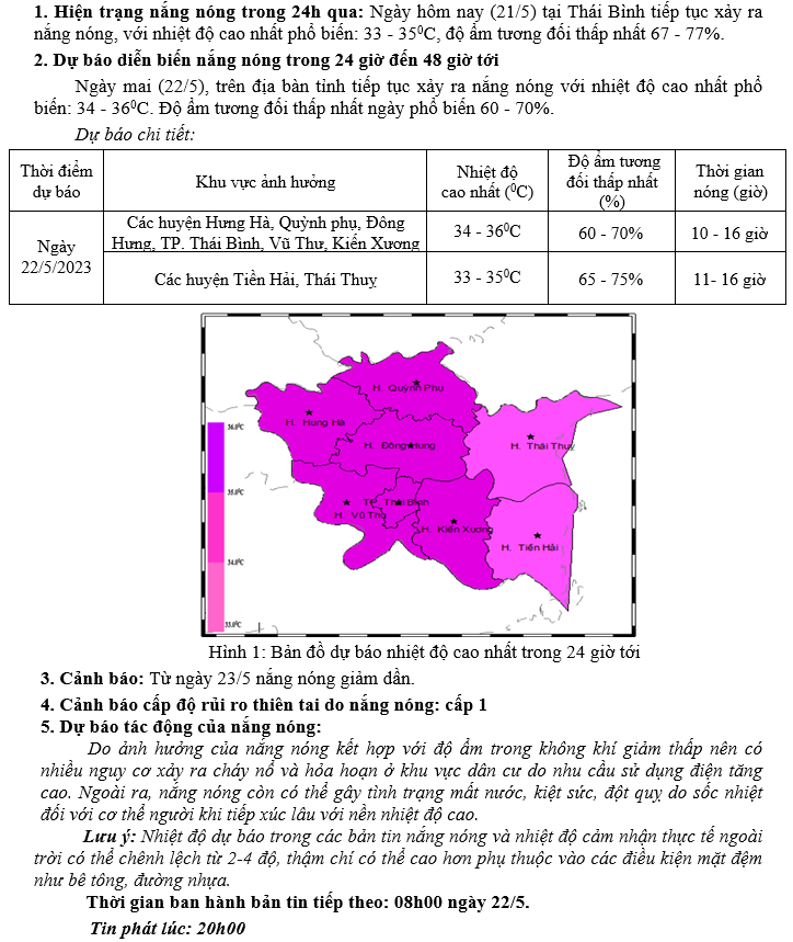 TIN DỰ BÁO NẮNG NÓNG KHU VỰC TỈNH THÁI BÌNH (20h NGÀY 21/5/2023)