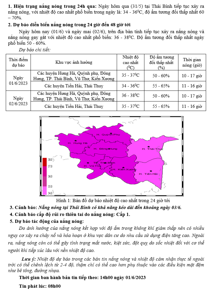 TIN DỰ BÁO NẮNG NÓNG TẠI THÁI BÌNH (08h NGÀY 01/6/2023)