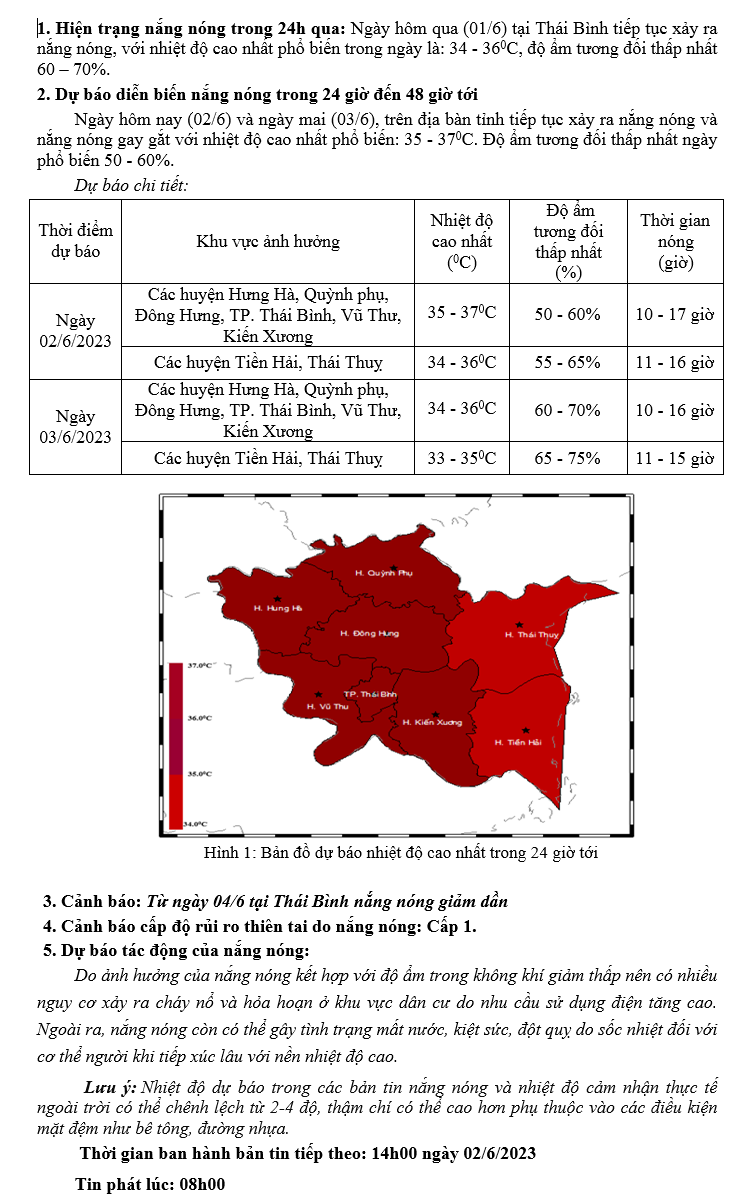 TIN DỰ BÁO NẮNG NÓNG TẠI THÁI BÌNH (08h00 NGÀY 02/6/2023)