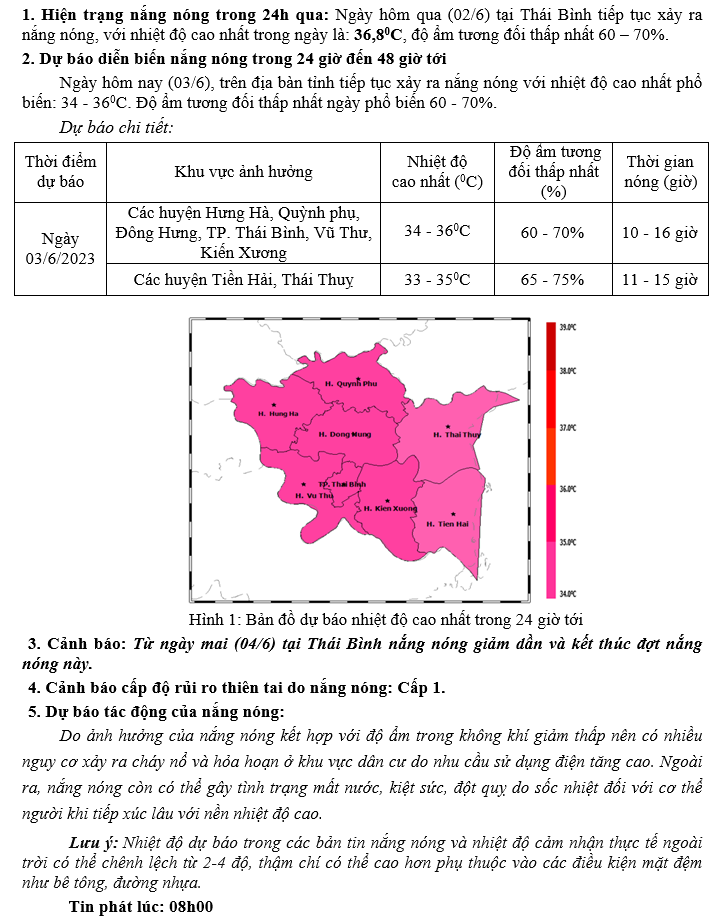 TIN DỰ BÁO NẮNG NÓNG TẠI THÁI BÌNH (08h00 NGÀY 03/6/2023)