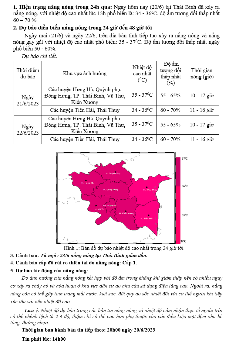 TIN DỰ BÁO NẮNG NÓNG TẠI THÁI BÌNH (14h NGÀY 20/6/2023)