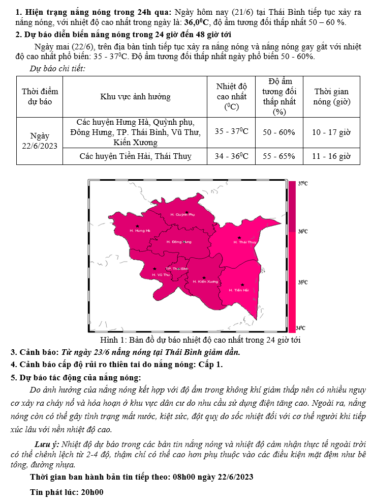 TIN DỰ BÁO NẮNG NÓNG TẠI THÁI BÌNH (20h NGÀY 21/6/2023)