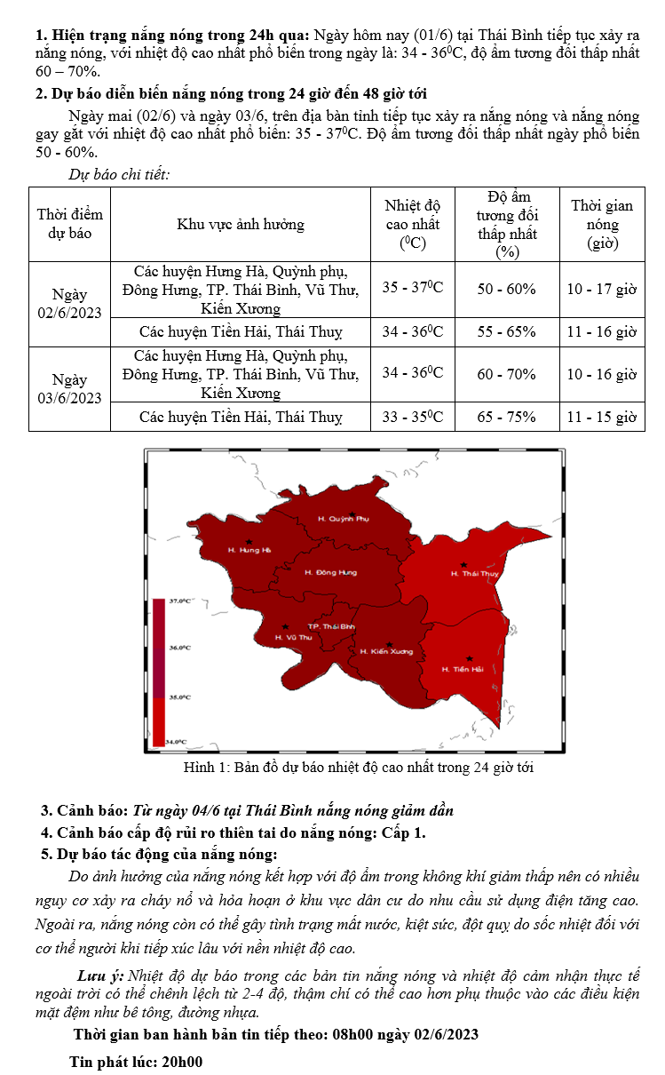 TIN DỰ BÁO NẮNG NÓNG TẠI THÁI BÌNH (20h00 NGÀY 01/6/2023)