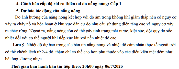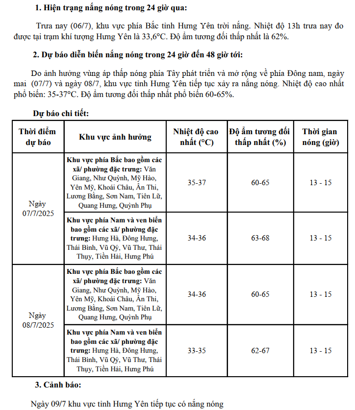 TIN DỰ BÁO NẮNG NÓNG TỈNH HƯNG YÊN (14h00 NGÀY 06/7/2025)