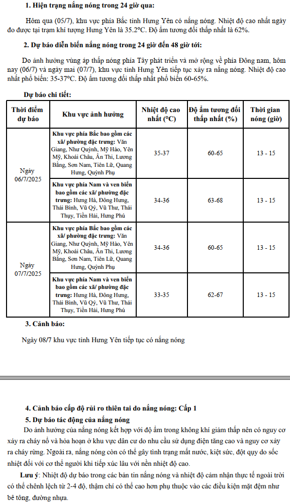 Tin dự báo nắng nóng tỉnh Hưng Yên