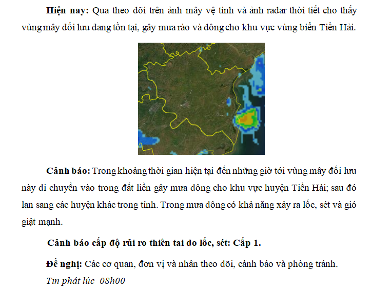 CẢNH BÁO MƯA DÔNG TRÊN KHU VỰC TỈNH THÁI BÌNH NGÀY 01/9/2021 (lần 2)