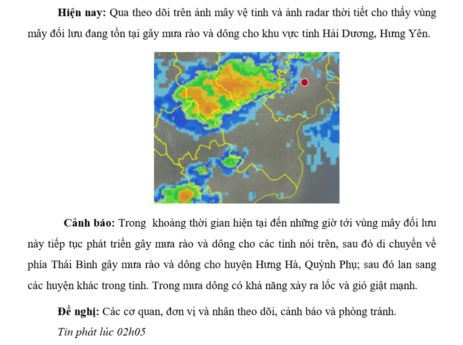 CẢNH BÁO MƯA DÔNG TRÊN KHU VỰC TỈNH THÁI BÌNH ngày 02/03/2021 (lần 1)