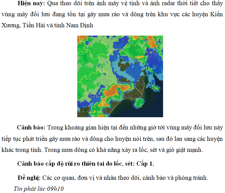 CẢNH BÁO MƯA DÔNG TRÊN KHU VỰC TỈNH THÁI BÌNH NGÀY 05/9/2021 (lần 3)