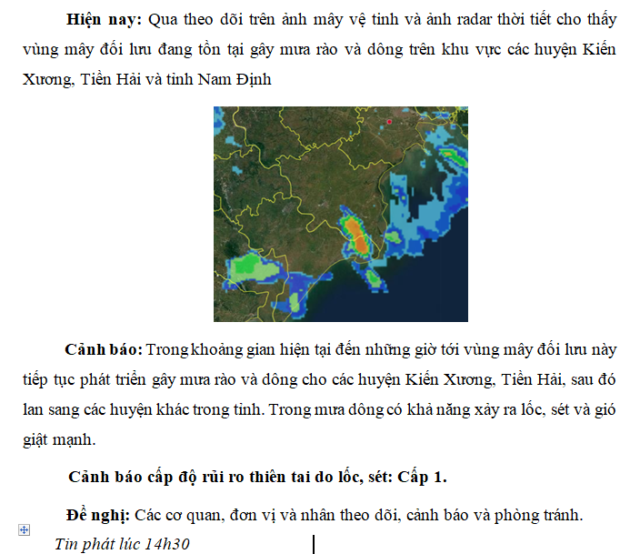 CẢNH BÁO MƯA DÔNG TRÊN KHU VỰC TỈNH THÁI BÌNH NGÀY 05/9/2021 (lần 4)