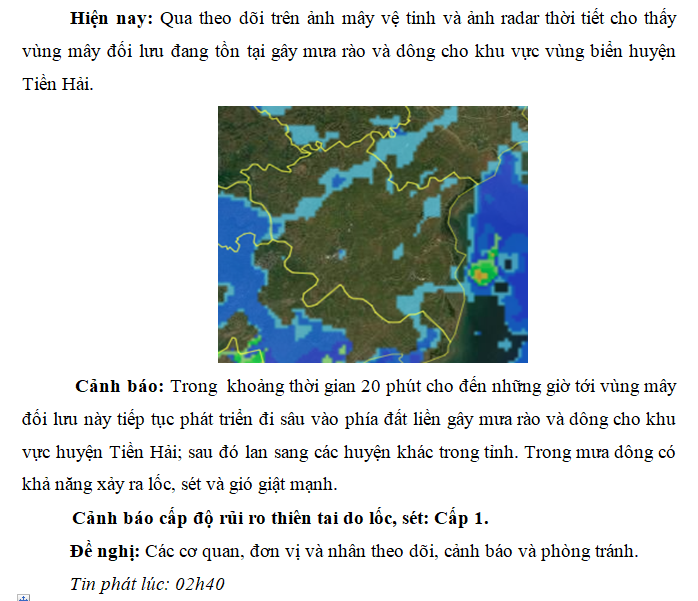 CẢNH BÁO MƯA DÔNG TRÊN KHU VỰC TỈNH THÁI BÌNH NGÀY 06/10/2021 (lần1)