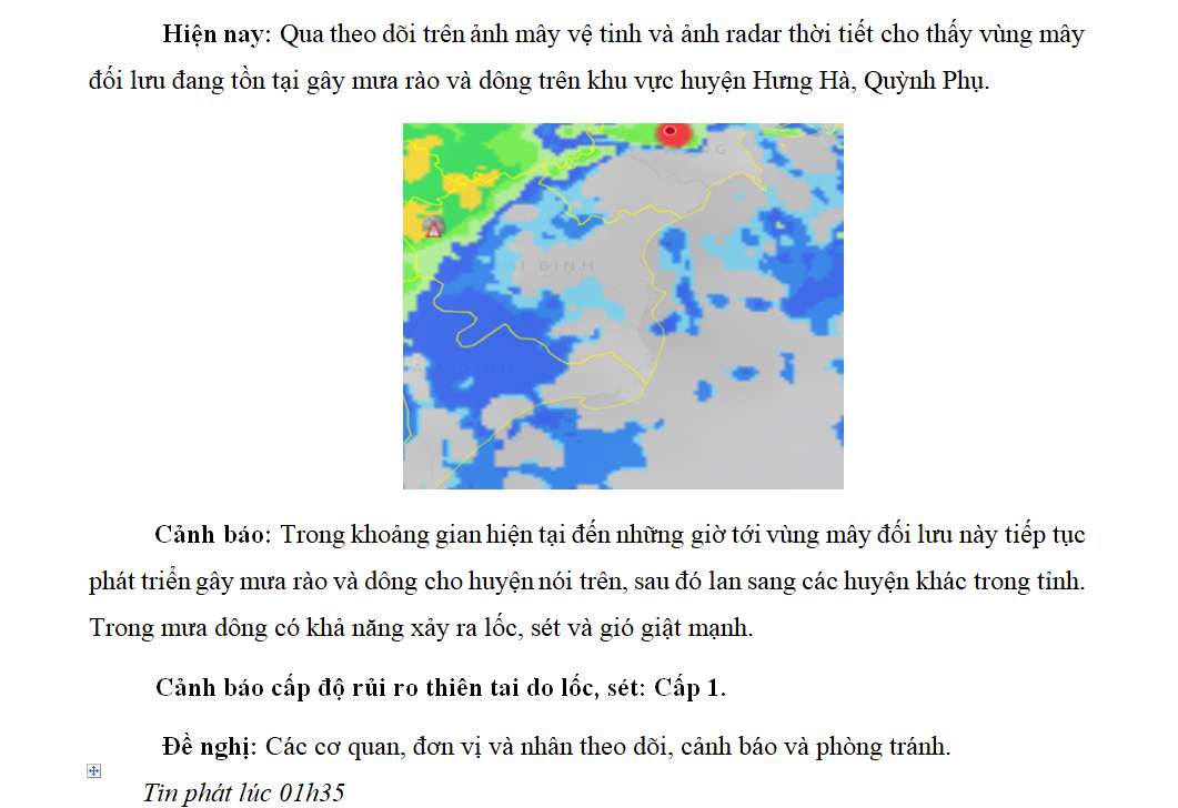CẢNH BÁO MƯA DÔNG TRÊN KHU VỰC TỈNH THÁI BÌNH NGÀY 07/5/2022 (LẦN 1)