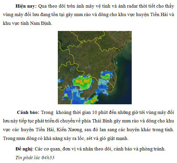 CẢNH BÁO MƯA DÔNG TRÊN KHU VỰC TỈNH THÁI BÌNH ngày 07/6/2021( lần 1)