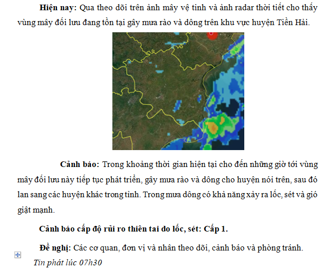 CẢNH BÁO MƯA DÔNG TRÊN KHU VỰC TỈNH THÁI BÌNH NGÀY 08/5/2022 (lần 2)