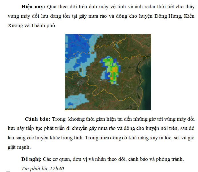 CẢNH BÁO MƯA DÔNG TRÊN KHU VỰC TỈNH THÁI BÌNH ngày 10/6/2021 ( lần 3)