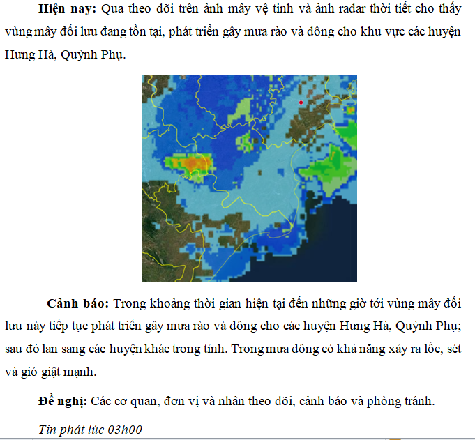 CẢNH BÁO MƯA DÔNG TRÊN KHU VỰC TỈNH THÁI BÌNH ngày 20/05/2021 (lần 1)