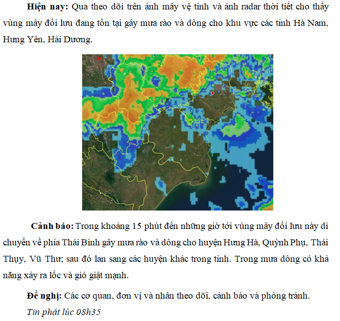 CẢNH BÁO MƯA DÔNG TRÊN KHU VỰC TỈNH THÁI BÌNH NGÀY 21/03/2021 (lần 1)