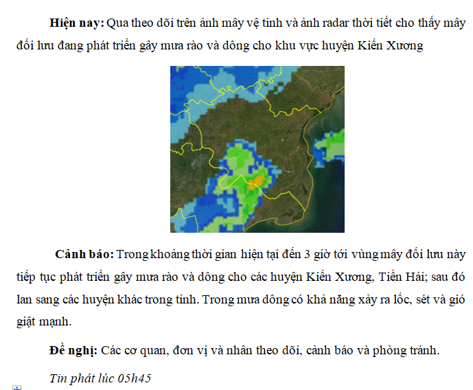 CẢNH BÁO MƯA DÔNG TRÊN KHU VỰC TỈNH THÁI BÌNH ngày 21/05/2021 (lần 1)