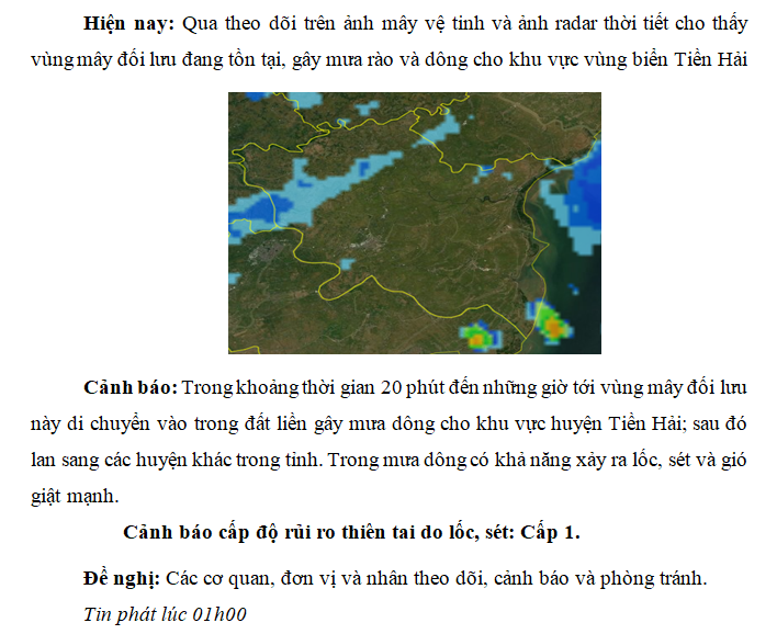 CẢNH BÁO MƯA DÔNG TRÊN KHU VỰC TỈNH THÁI BÌNH NGÀY 24/9/2021 (lần 1)